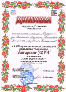 Вокальный коллектив КЦСОН «Кежемский» «Раздолье» получил сразу два диплома лауреата II степени в номинации «народная песня» и «патриотическая песня». Поздравляем!
