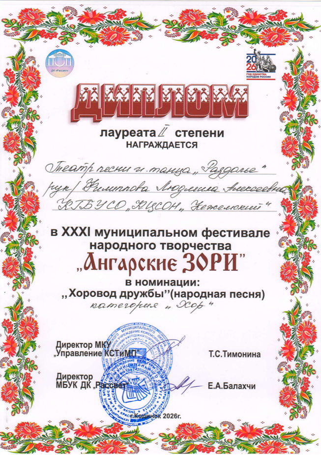 Вокальный коллектив КЦСОН «Кежемский» «Раздолье» получил сразу два диплома лауреата II степени в номинации «народная песня» и «патриотическая песня». Поздравляем!