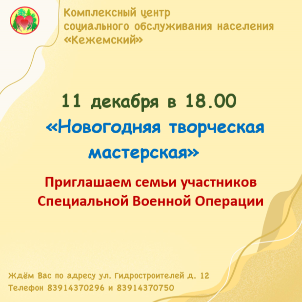 Уважаемые семьи участников Специальной Военной Операции! 11 декабря в 18:00