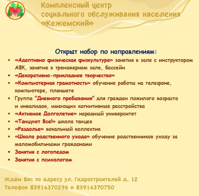 С декабря месяца получатели социальных услуг КЦСОН «Кежемский» бесплатно посещают
