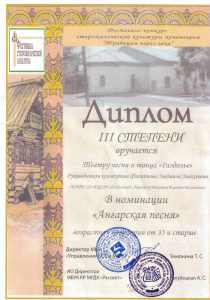 В ноябре месяце коллектив «Раздолье» принимал участие в районном фестивале-конкурсе старожильческой культуры приангарья «Традиции через века».