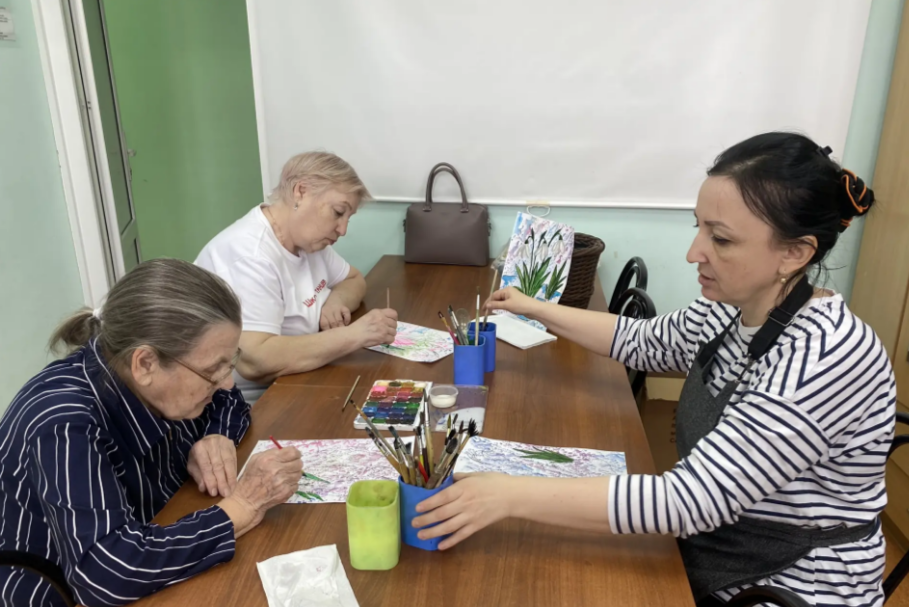 Наши участники занимались физкультурой, выполняли лёгкие упражнения на укрепление здоровья, а затем погрузились в творческий процесс — рисовали и делились своими идеями.